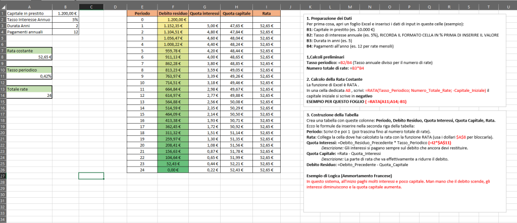 - Attenzione: Se il tasso è annuale (es. 4%) ma paghi rate mensili, devi dividerlo per 12 (